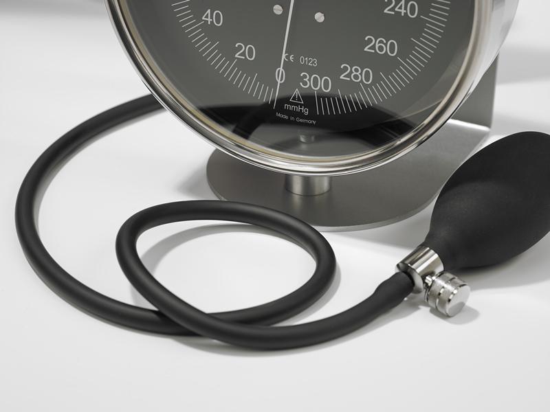 - stand: manometer with black, calibrated ( adult size ) velcro cuff, coiled tube, valve with bulb, stand with 5 castor