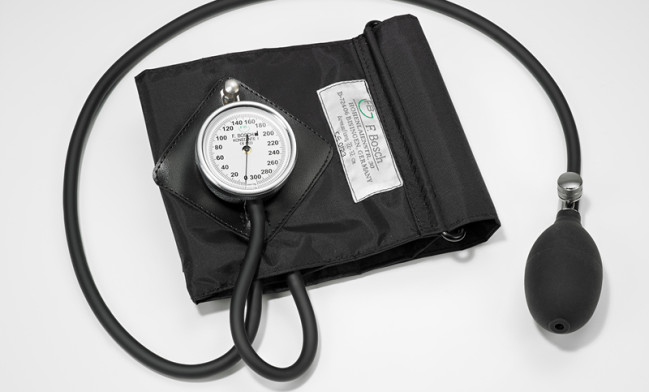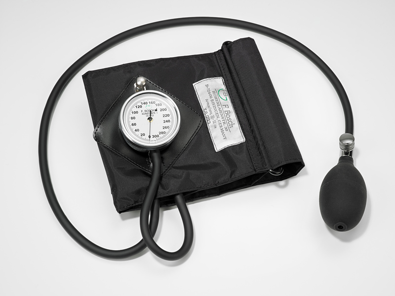 - standard equipment: manometer with black D-ring cuff (adult size), valve with bulb, in zipper case