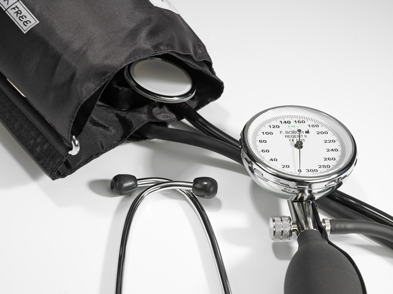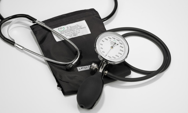- standard equipment: manometer with black D-ring cuff (adult size) with integrated stethoscope, in zipper case