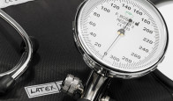 Traditional, plastic chromed aneroid sphygmomanometer, with large scaleboard